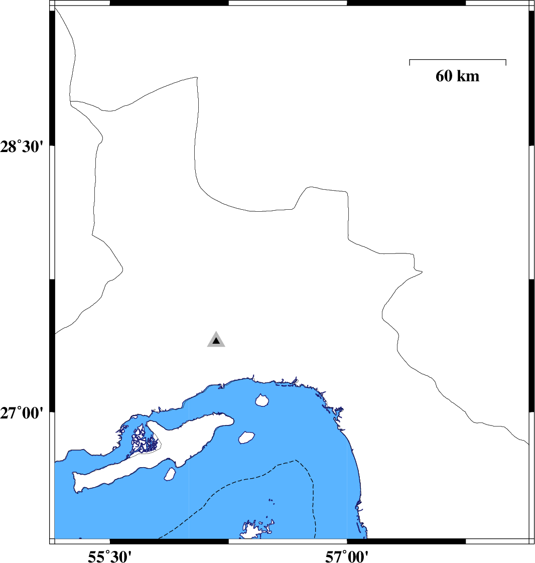 | 2013/01/24 | 09:28:32.3 | 12:58:32.3 | 27.78 | 56.65 | 15 | ML:4.2 | Hormozgan Province, 70 km North-West of Dehbarez | ||