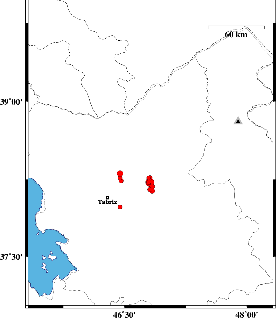 Azarbaijan Sharghi Province, 45 km West of Ahar | |