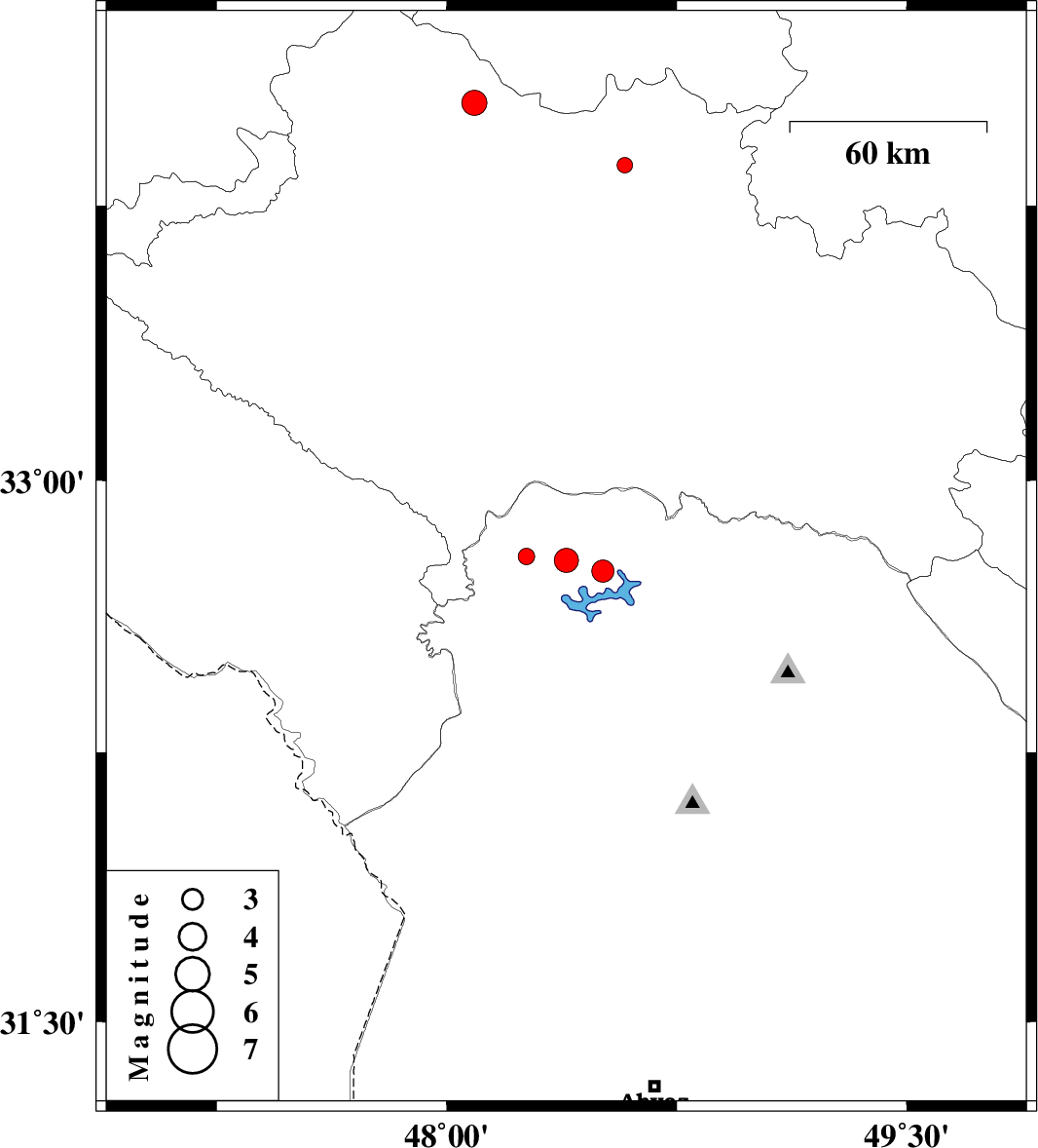 | 2013/02/04 | 05:31:57.5 | 09:01:57.5 | 34.03 | 48.09 | 15 | ML:3.6 | Lorestan Province, 12 km East of Nurabad | ||