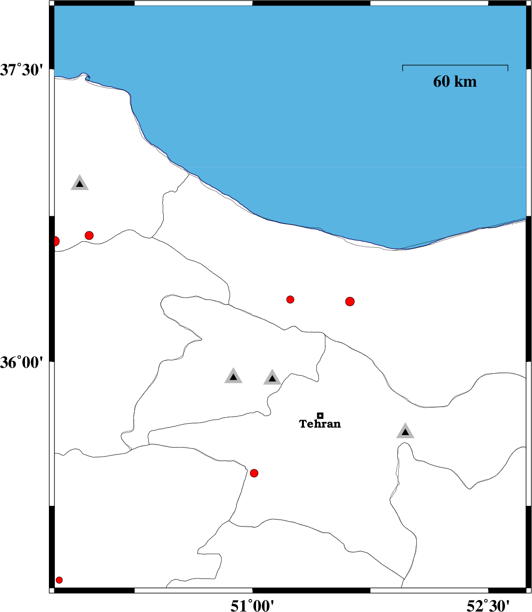 | 2013/02/11 | 06:43:09.8 | 10:13:09.8 | 36.32 | 51.24 | 10 | ML:2.1 | Mazandaran Province, 40 km South-West of Chalus | ||