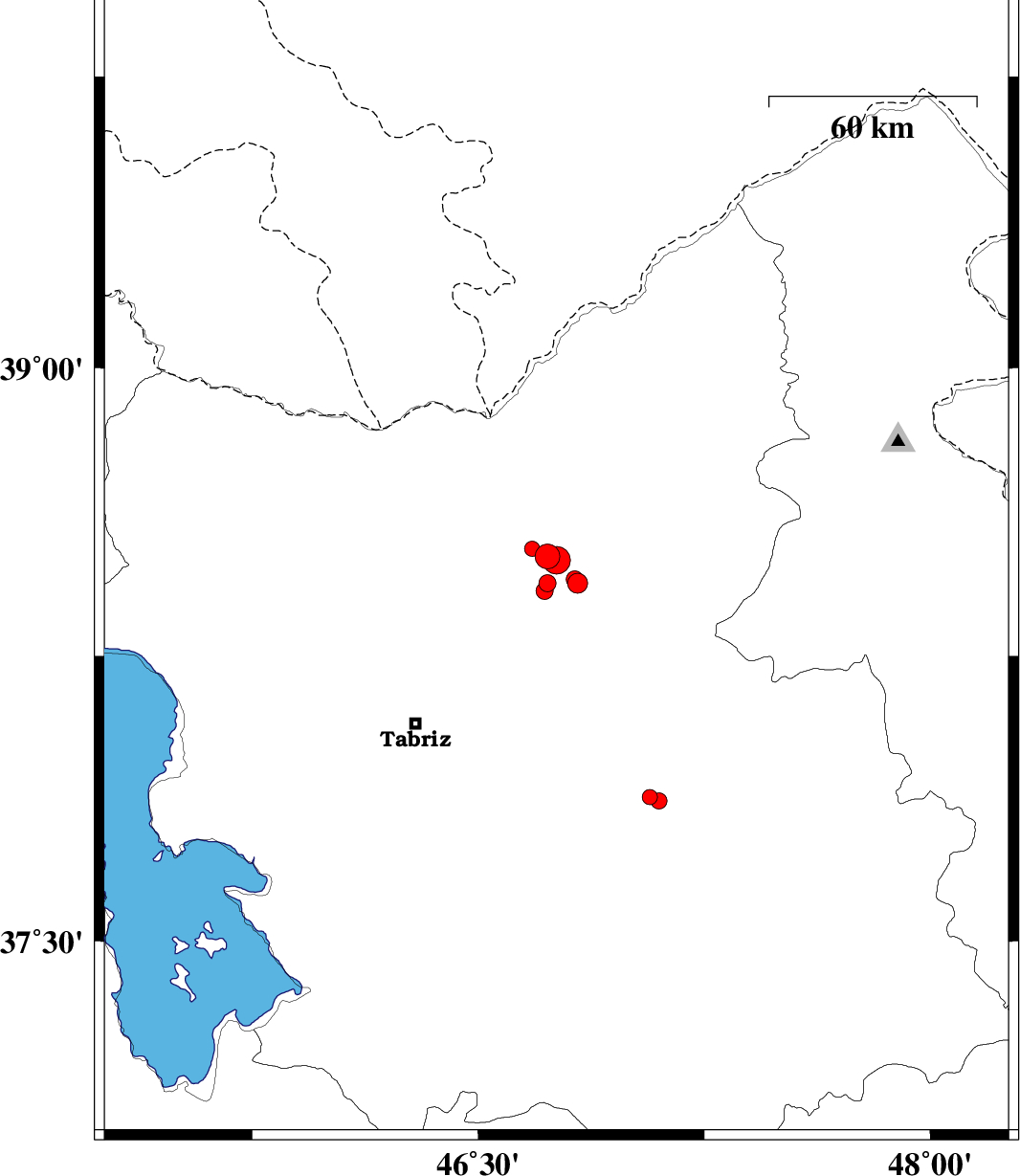 2013/02/12 08:11:17.4 11:41:17.4 37.8847.0714 ML:2.2 Azarbaijan Sharghi Province, 21 km East of Bostanabad