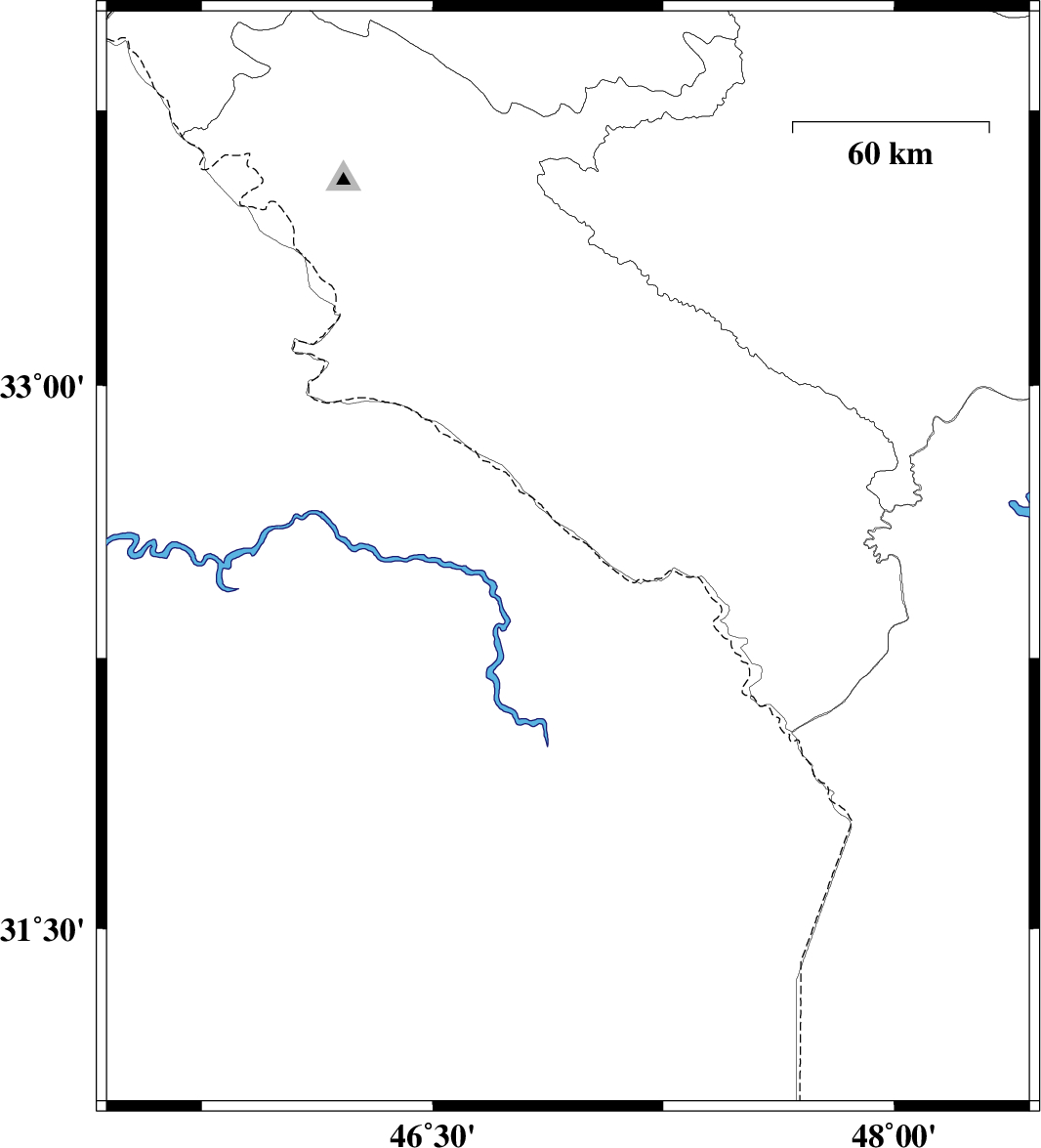 | 2013/02/14 | 05:23:24.5 | 08:53:24.5 | 32.52 | 46.94 | 14 | ML:3.5 | Iraq, 36 km South-West of Dehloran | ||
