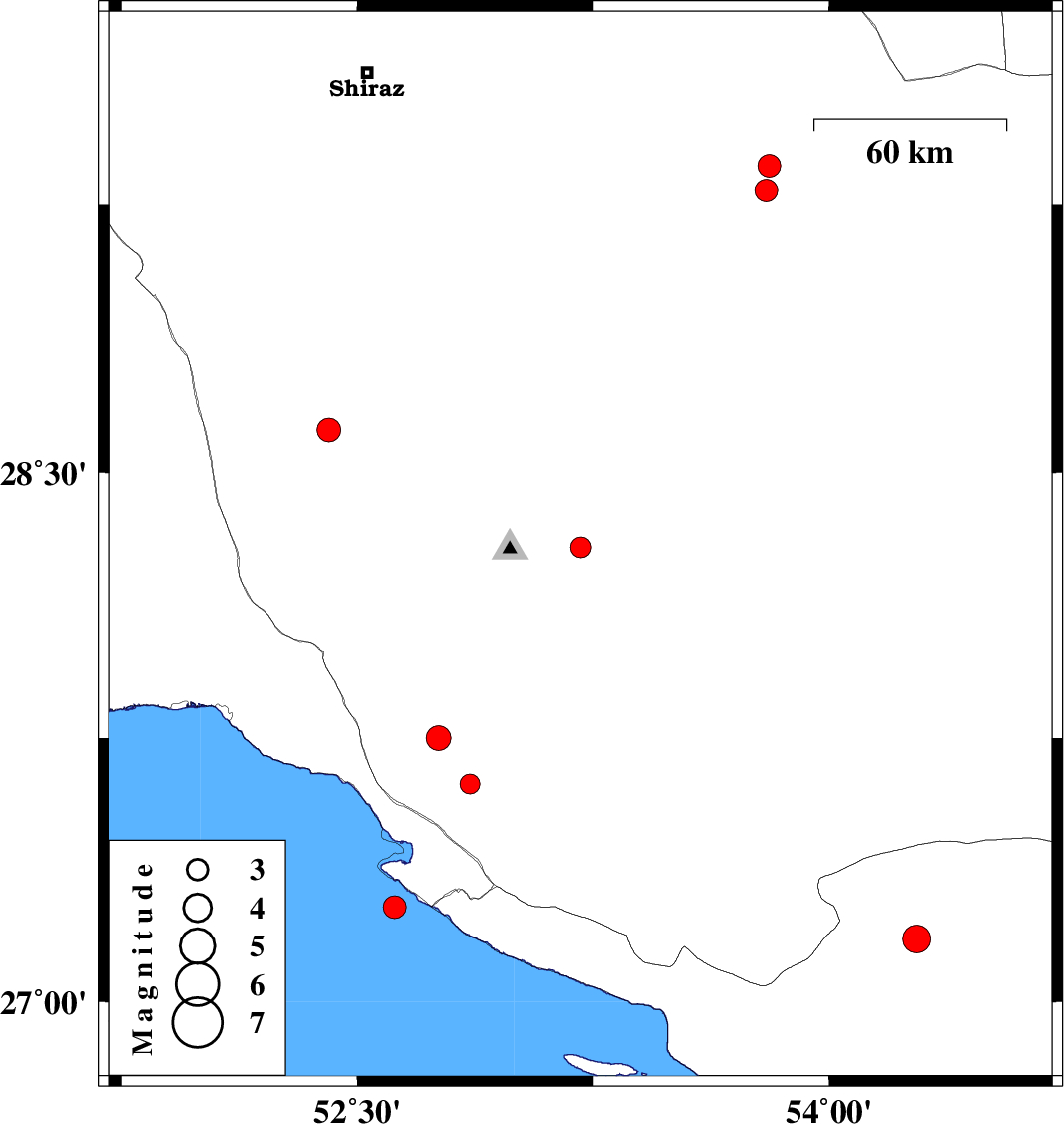 | 2013/02/15 | 12:10:56.2 | 15:40:56.2 | 29.29 | 53.8 | 18 | ML:3.2 | Fars Province, 30 km North-West of Estahban | ||
