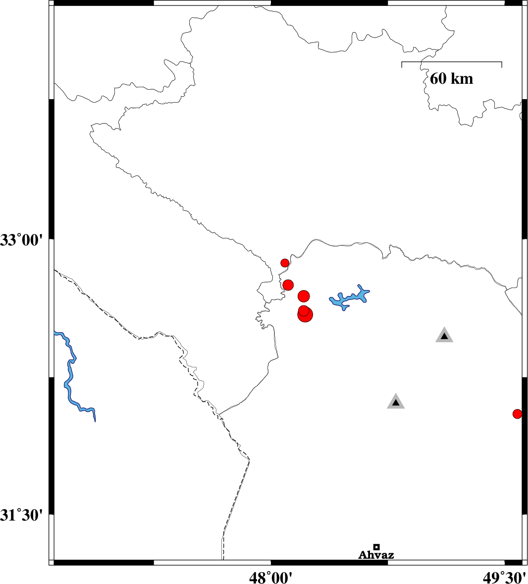 | 2013/02/19 | 04:55:48.5 | 08:25:48.5 | 32.59 | 48.22 | 16 | ML:4.4 | Khoozestan Province, 19 km North-West of Andimeshk |