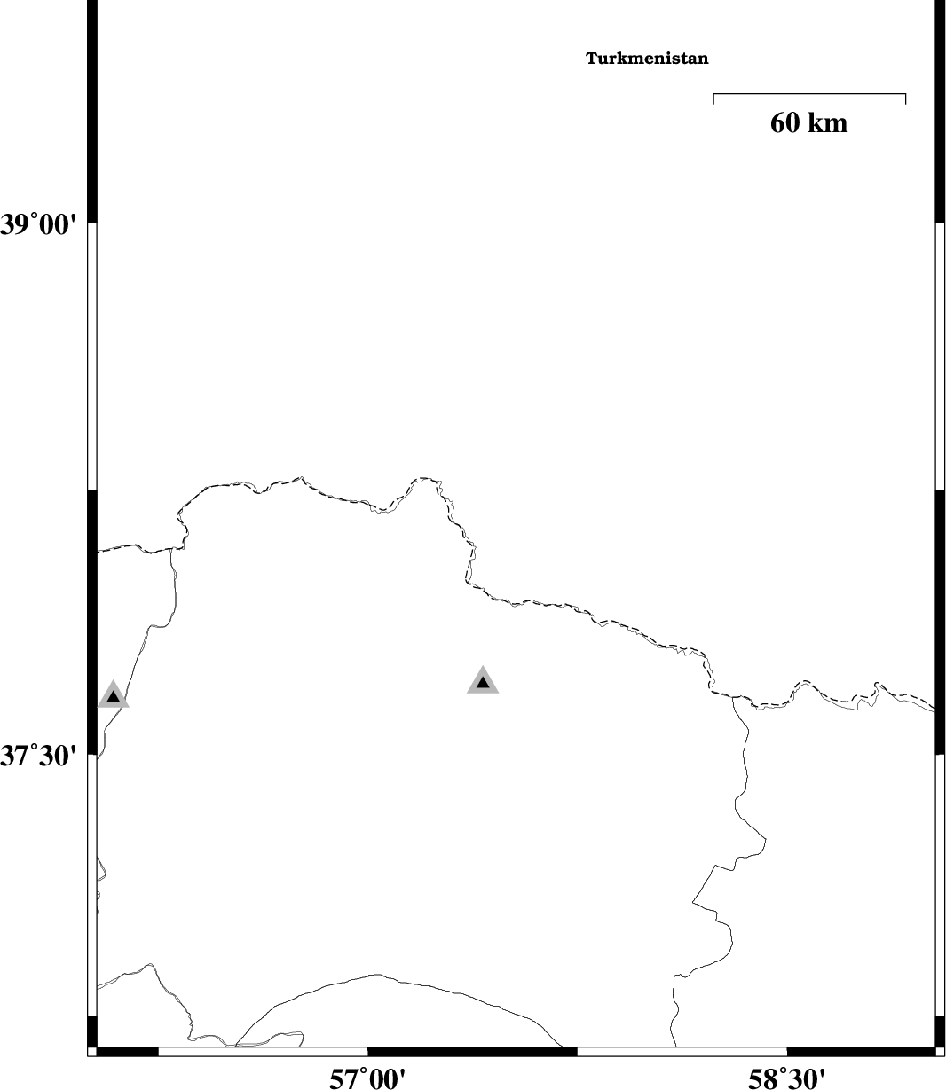 | 2013/02/12 | 12:26:58.1 | 15:56:58.1 | 37.31 | 57.18 | 25 | ML:3.9 | Khorasan(north) Province, 23 km South-West of Bojnurd | ||