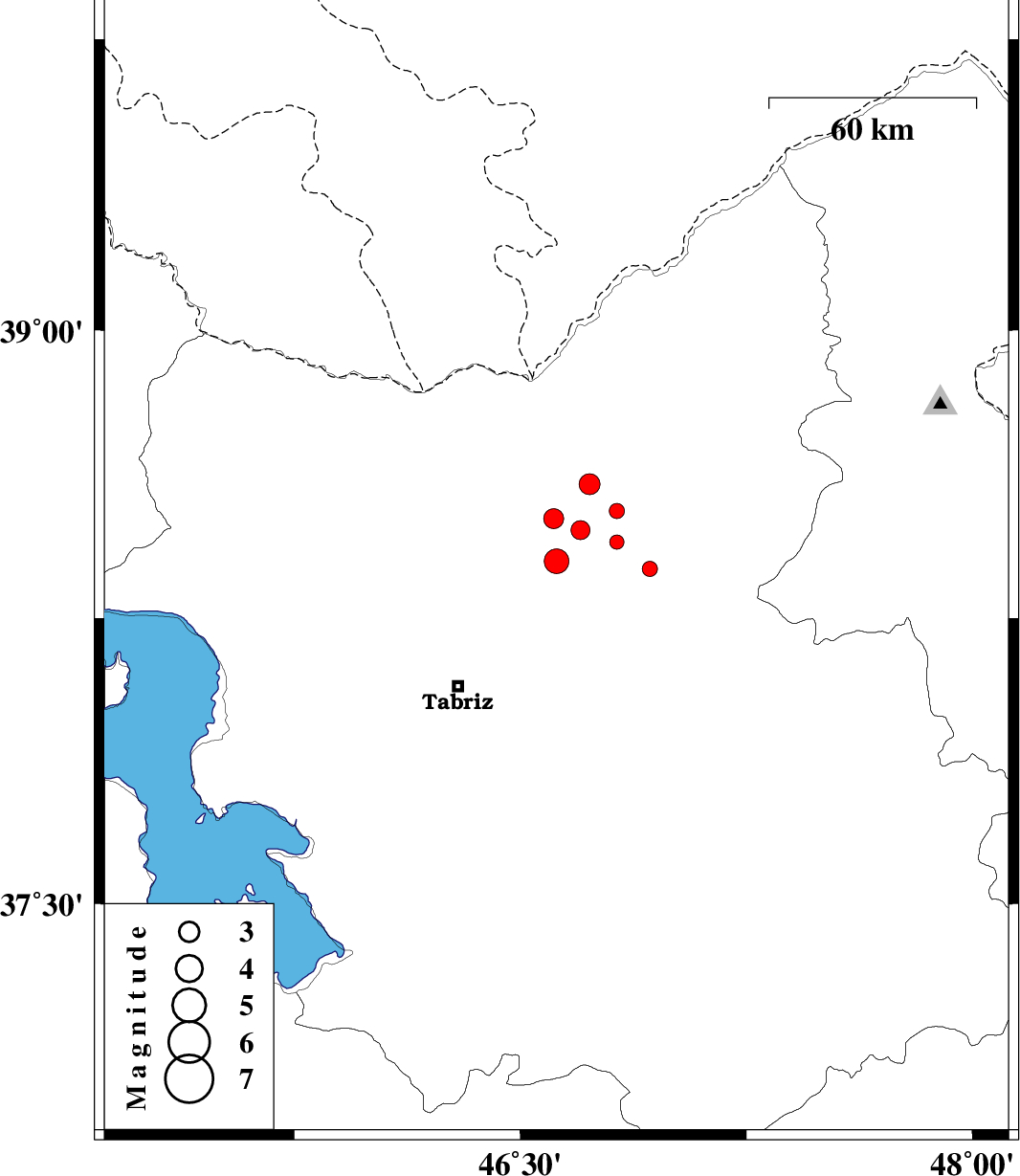 | 2013/02/28 | 06:23:16.0 | 09:53:16.0 | 38.38 | 46.93 | 14 | ML:2.2 | Azarbaijan Sharghi Province, 17 km West of Ahar | ||