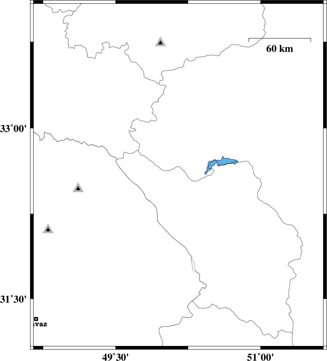 | 2013/02/26 | 15:19:32.1 | 18:49:32.1 | 32 | 49.18 | 14 | ML:2.3 | Khoozestan Province, 13 km West of Masjed Soleyman | ||