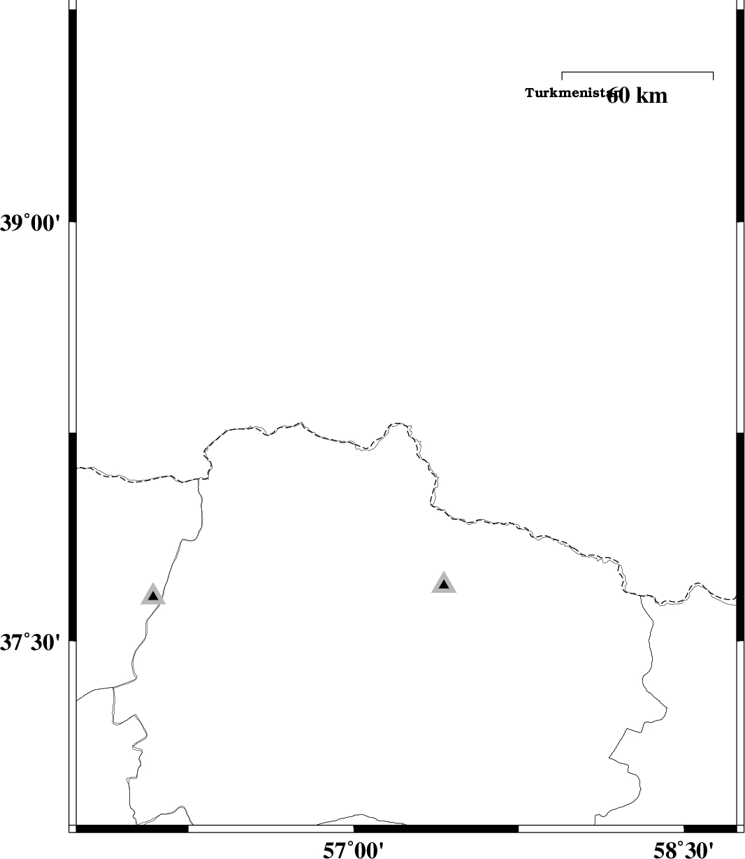 | 2013/03/02 | 00:32:59.9 | 04:02:59.9 | 37.92 | 57.44 | 23 | ML:2.2 | Khorasan(north) Province, 50 km North-East of Bojnurd | ||