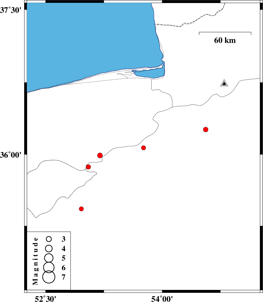 | 2013/03/10 | 17:49:55.3 | 21:19:55.3 | 35.87 | 53.05 | 17 | ML:2.7 | Semnan Province, 27 km South of Pol-E-Sefid | ||