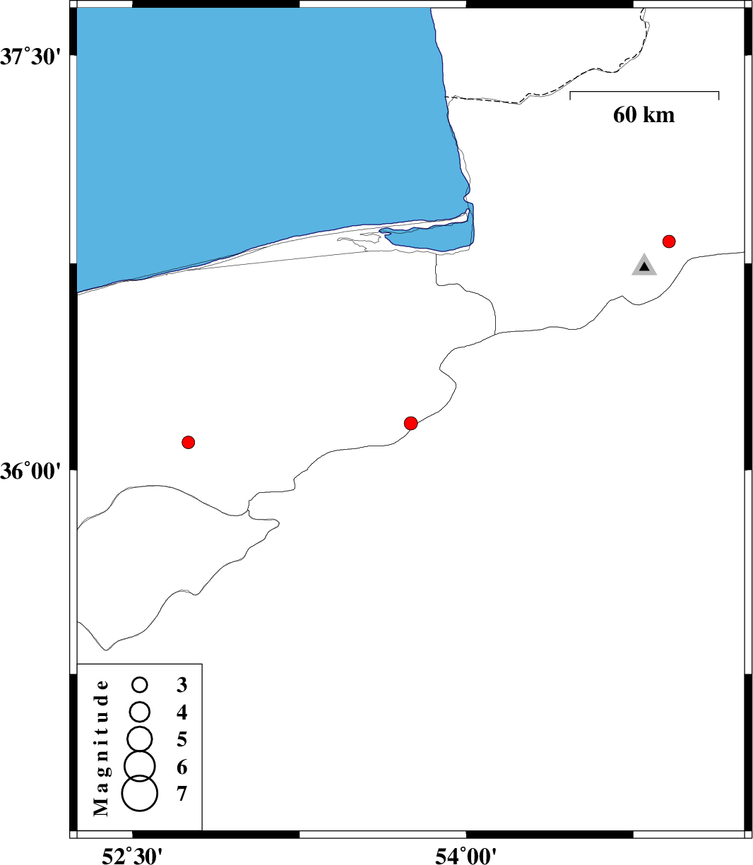 | 2013/03/26 | 16:27:11.5 | 20:57:11.5 | 36.83 | 54.91 | 14 | ML:2.6 | Golestan Province, 10 km Ali Abad |