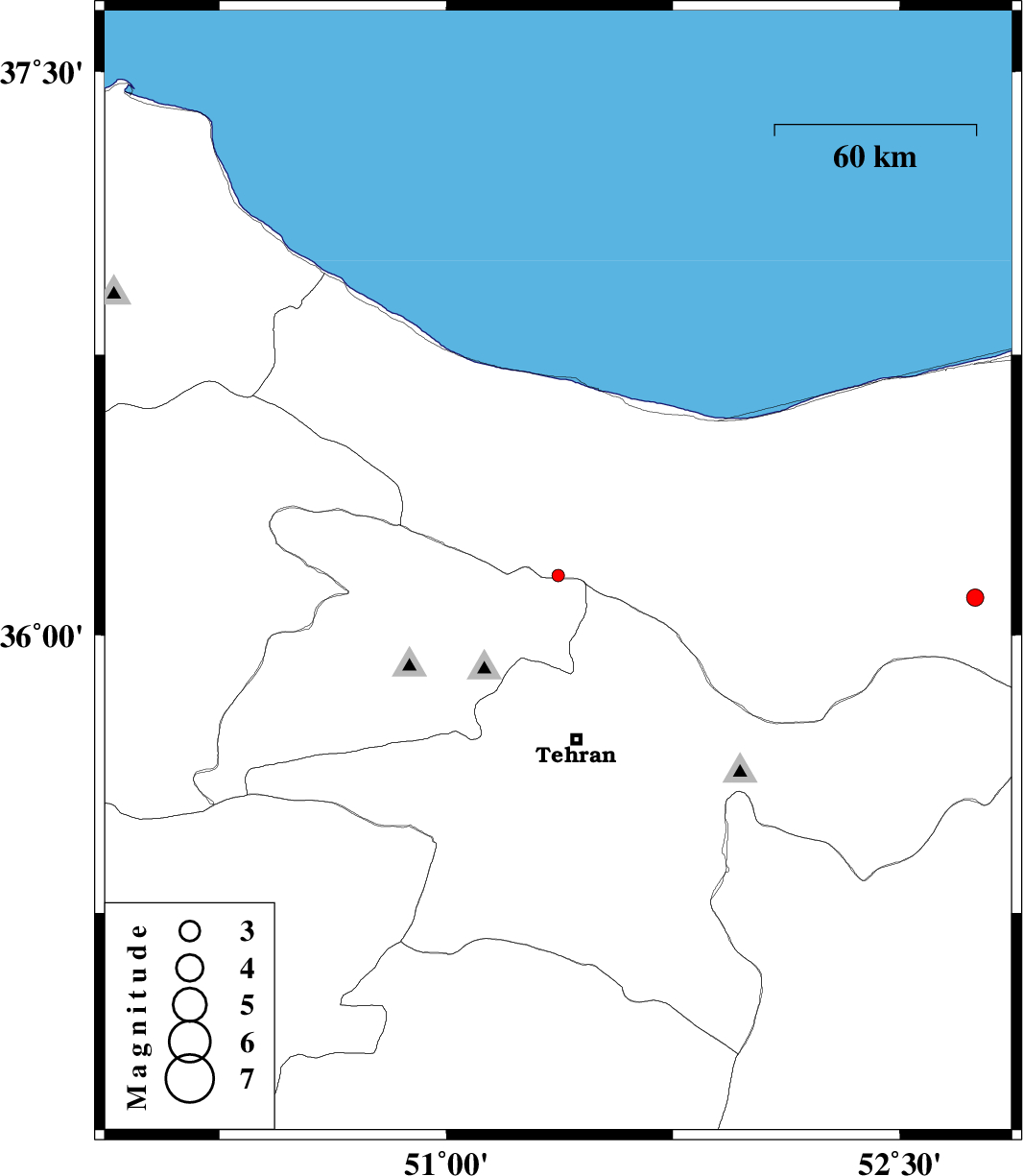 | 2013/04/06 | 20:07:58.1 | 00:37:58.1 | 36.16 | 51.37 | 18 | ML:1.9 | Mazandaran Province, 41 km North of Tajrish | ||