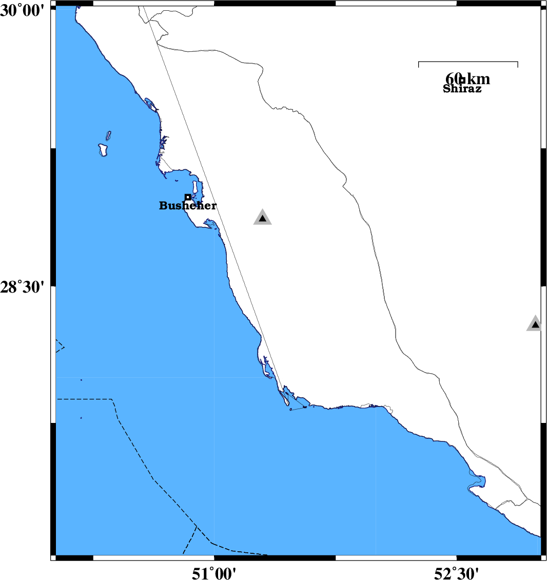 | 2013/04/07 | 04:34:00.8 | 09:04:00.8 | 28.52 | 51.52 | 21 | ML:4.1 | Bushehr Province, 21 km South-East of Khormog | ||