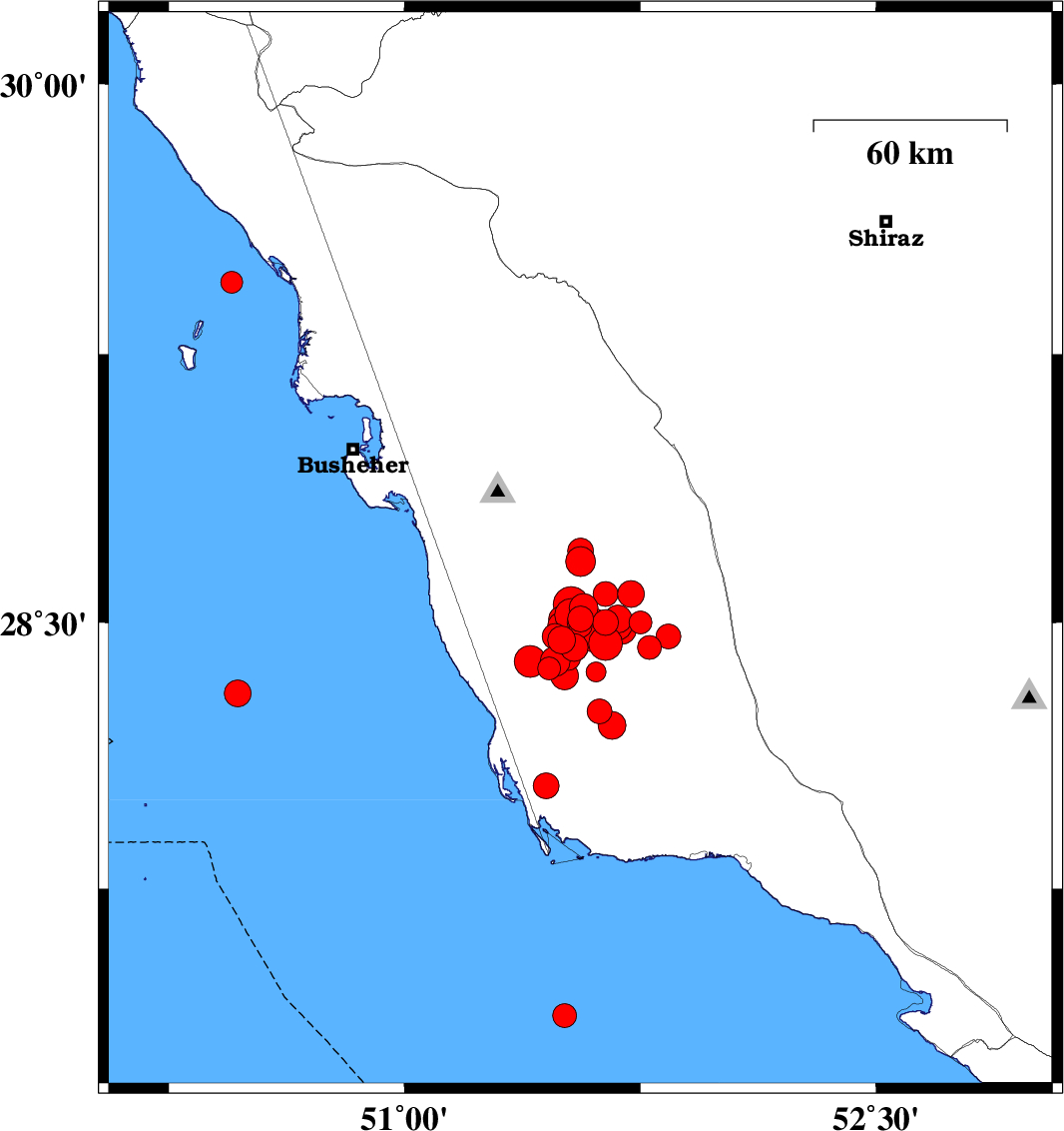 2013/04/09 15:26:10.8 19:56:10.8 28.4651.8436 ML:3.5 Bushehr Province, 50 km South-East of Khormog