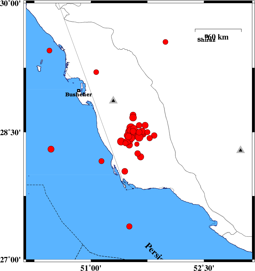 2013/04/03 15:35:12.6 20:05:12.6 29.4550.4518 ML:3.1 Persian Gulf, 15 km South of Bandar-e genaveh