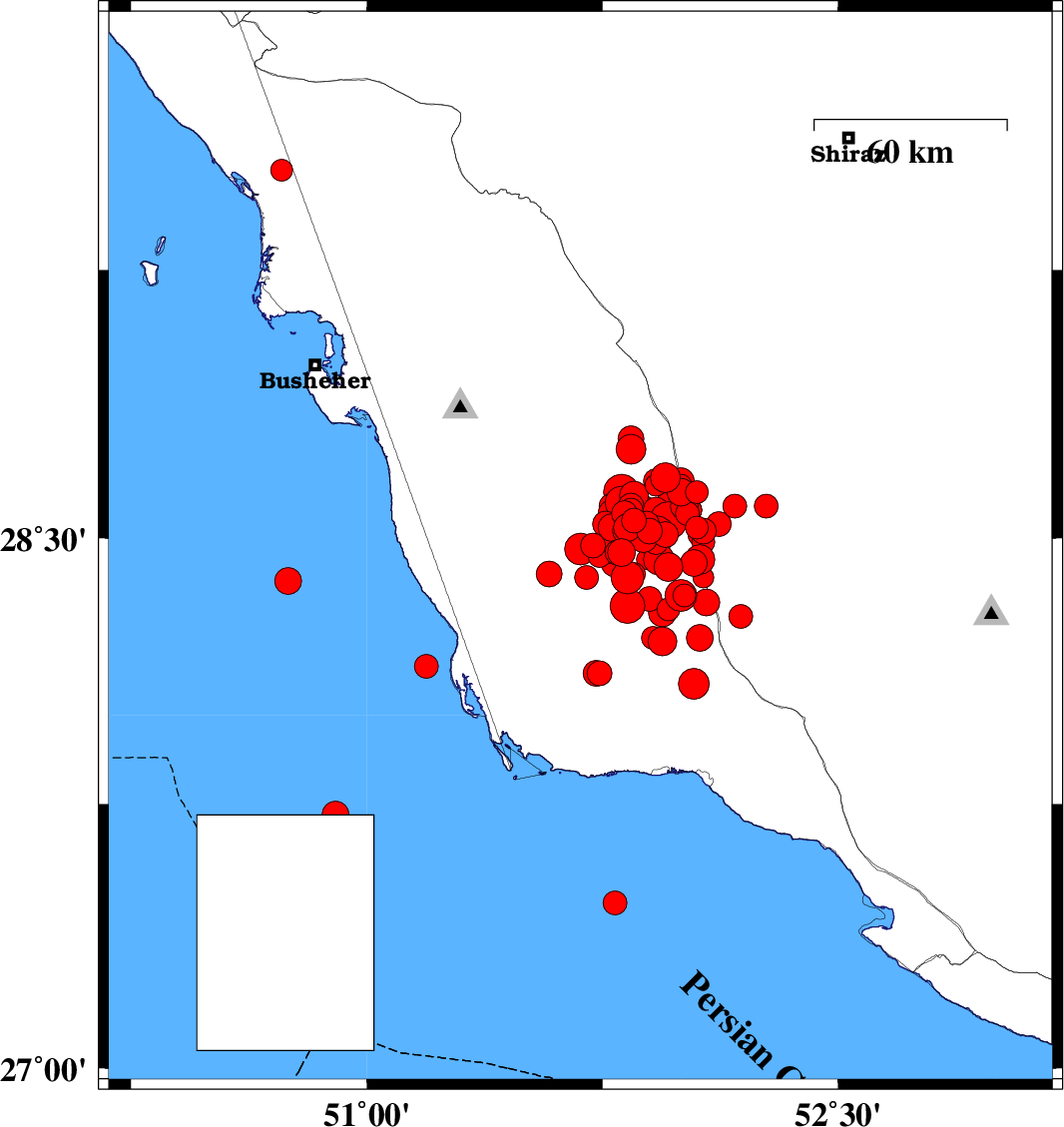 2013/04/10 19:41:57.5 00:11:57.5 28.4551.5530 ML:3.9 Bushehr Province, 28 km South-East of Khormog