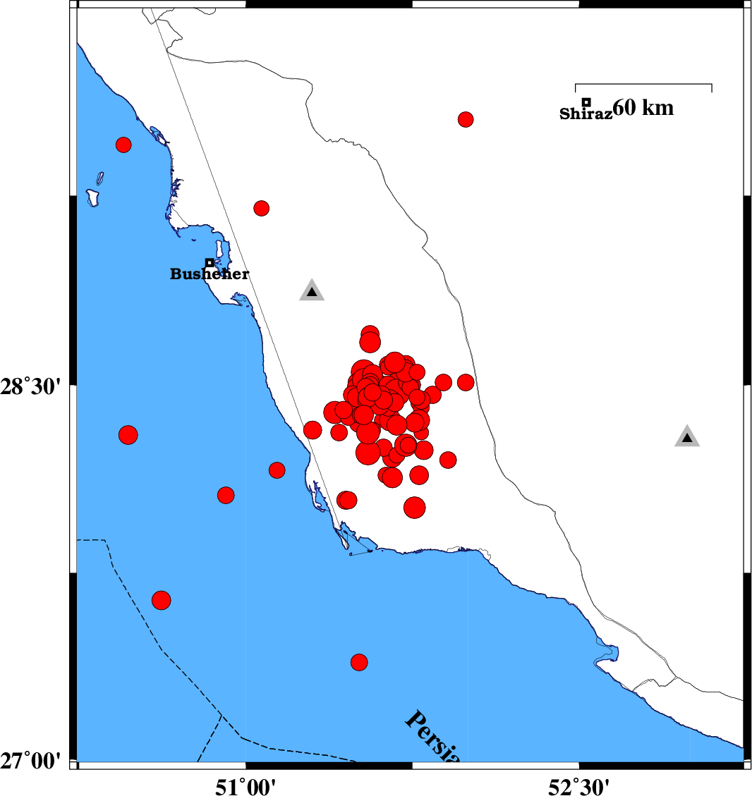 2013/04/10 01:58:29.6 06:28:29.6 28.4751.6827 ML:5.3 Bushehr Province, 36 km South-East of Khormog
