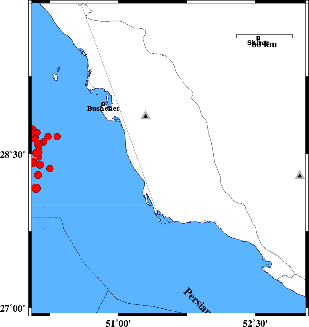 2013/04/09 23:32:54.0 04:02:54.0 28.350.4715 ML:3.8 Persian Gulf, 84 km South-West of Busheher