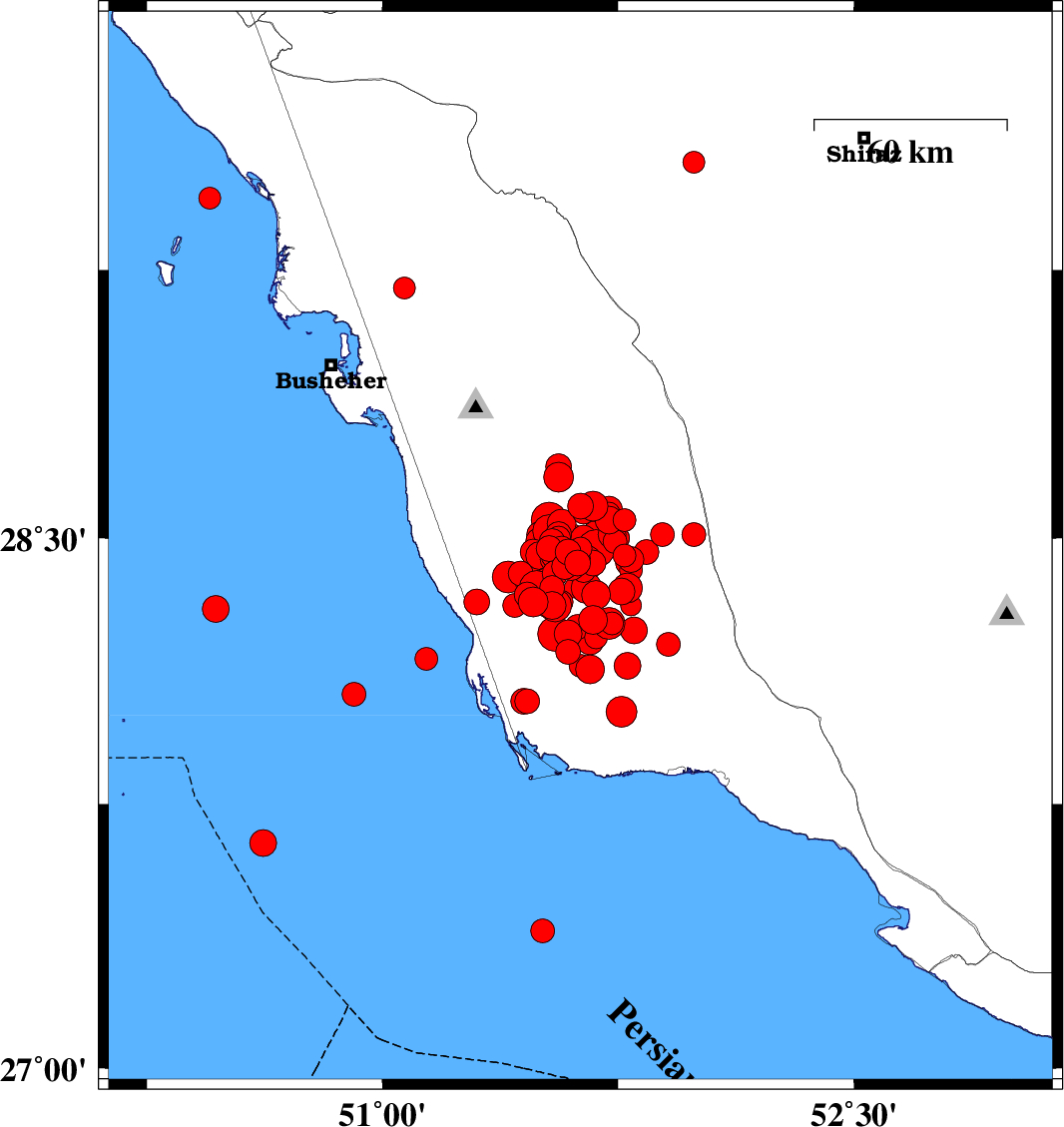 2013/04/10 19:41:57.5 00:11:57.5 28.4551.5530 ML:3.9 Bushehr Province, 28 km South-East of Khormog