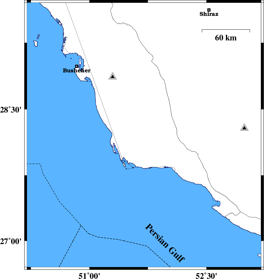 Bushehr Province, 52 km North-West of Bandar-e kangan | |