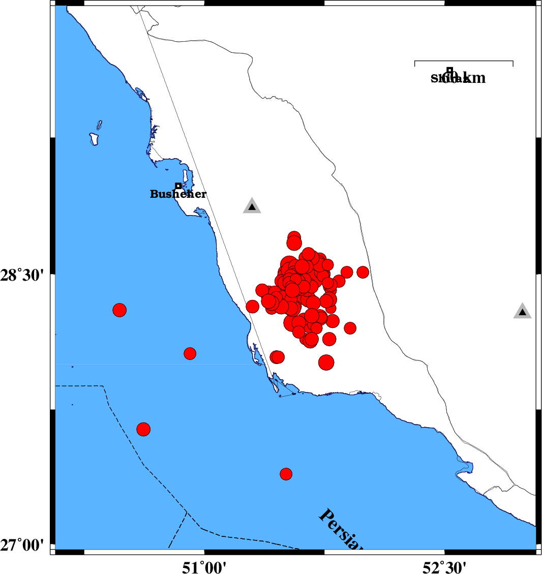 2013/04/10 19:41:57.5 00:11:57.5 28.4551.5530 ML:3.9 Bushehr Province, 28 km South-East of Khormog