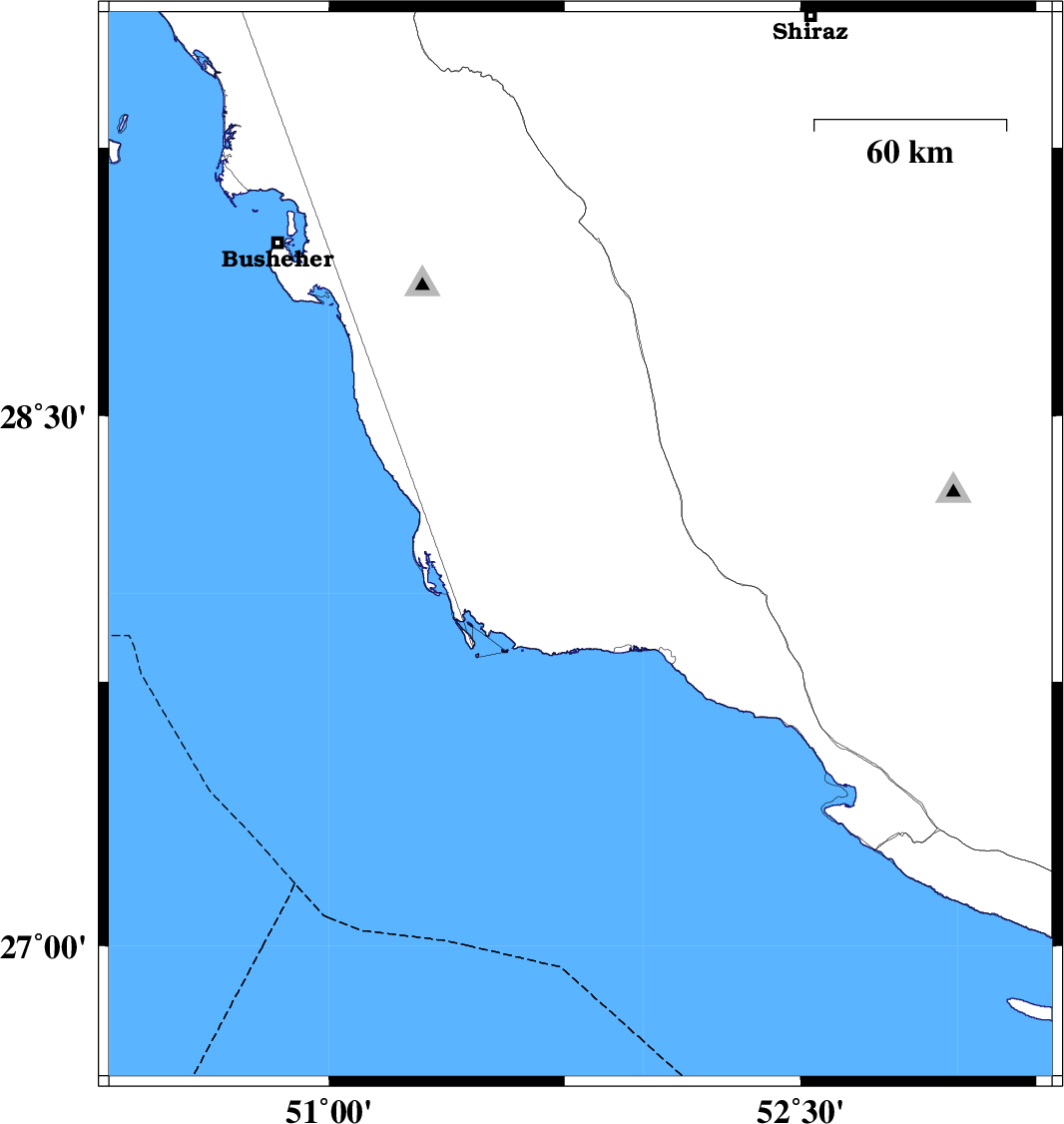 Bushehr Province, 53 km North-West of Bandar-e kangan | |