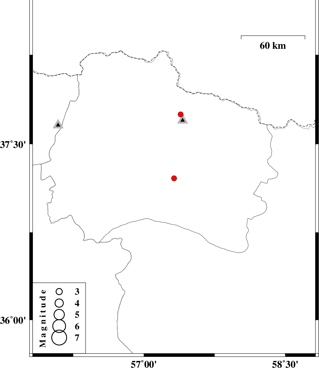 | 2013/04/16 | 14:33:15.4 | 19:03:15.4 | 37.21 | 57.32 | 14 | ML:2.5 | Khorasan(north) Province, 29 km South of Bojnurd | ||