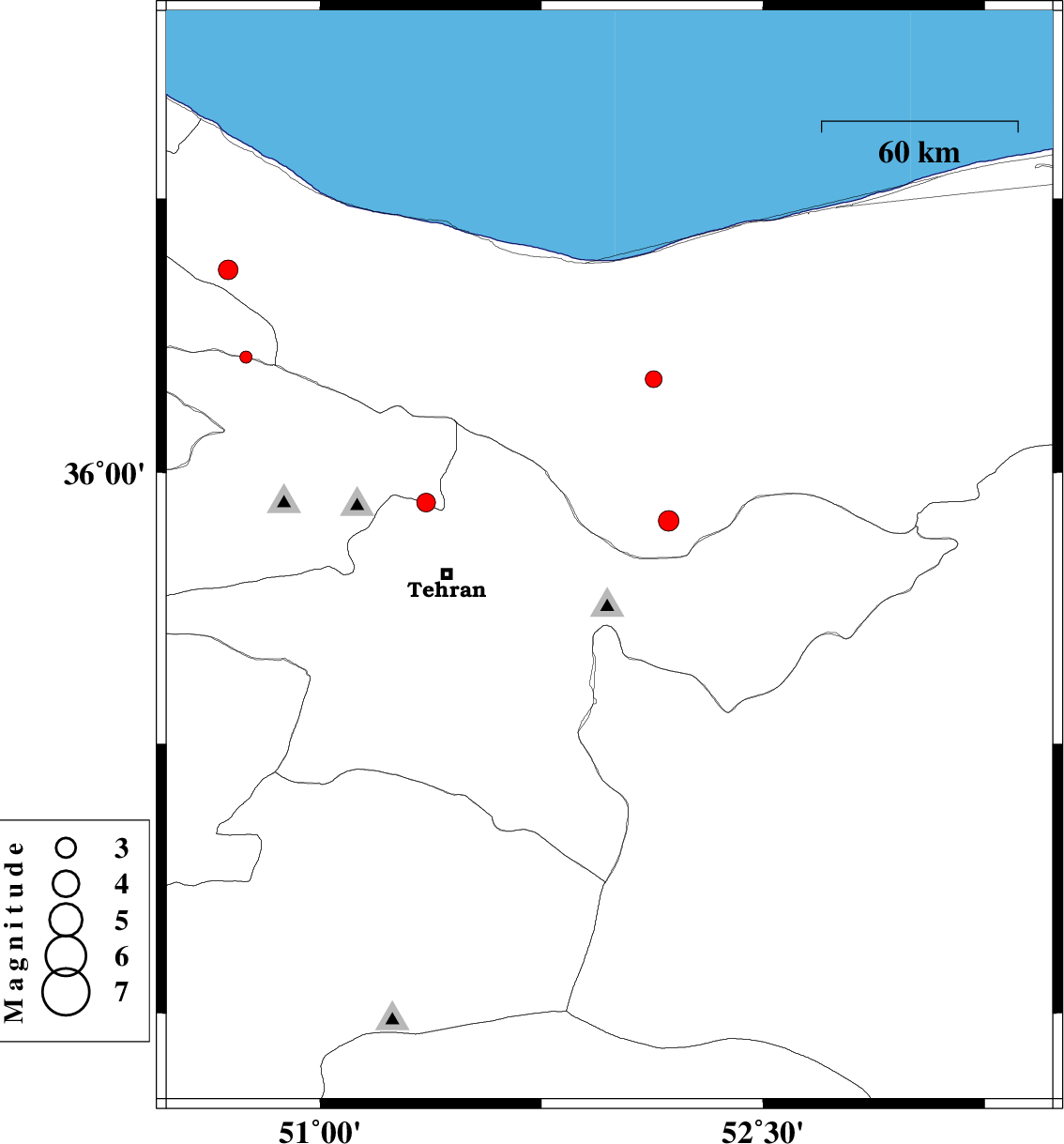 | 2013/04/06 | 20:07:58.1 | 00:37:58.1 | 36.16 | 51.37 | 18 | ML:1.9 | Mazandaran Province, 41 km North of Tajrish | ||