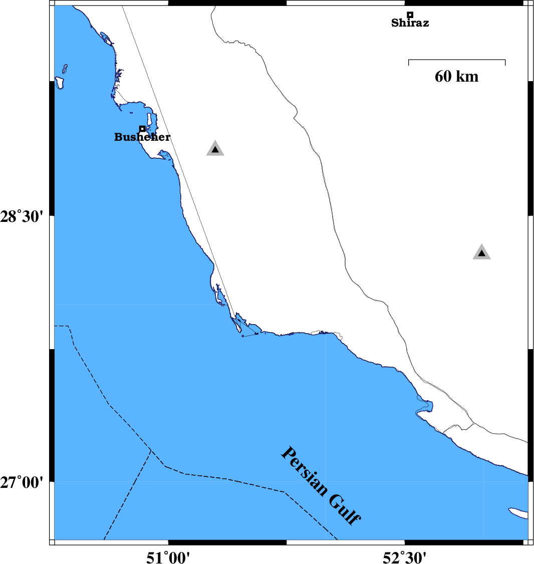 Bushehr Province, 44 km North-West of Bandar-e kangan | |
