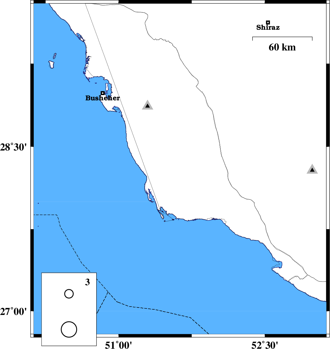 Bushehr Province, 47 km North-West of Bandar-e kangan | |
