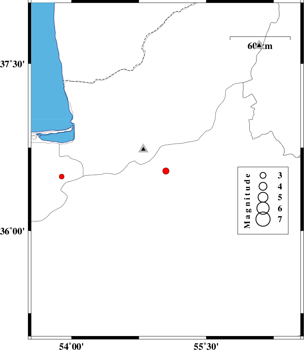 | 2013/05/09 | 21:10:06.3 | 01:40:06.3 | 36.54 | 55.05 | 14 | ML:3.2 | Semnan Province, 15 km North of Shahrud | ||