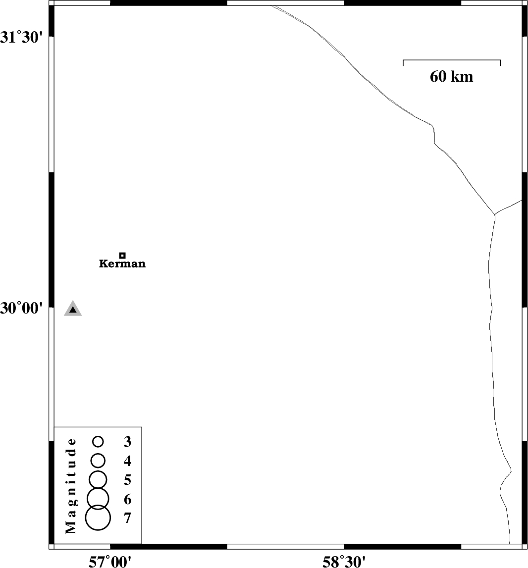 | 2013/05/10 | 05:23:35.0 | 09:53:35.0 | 30.17 | 58.14 | 18 | ML:3.2 | Kerman Province, 103 km South-East of Kerman |