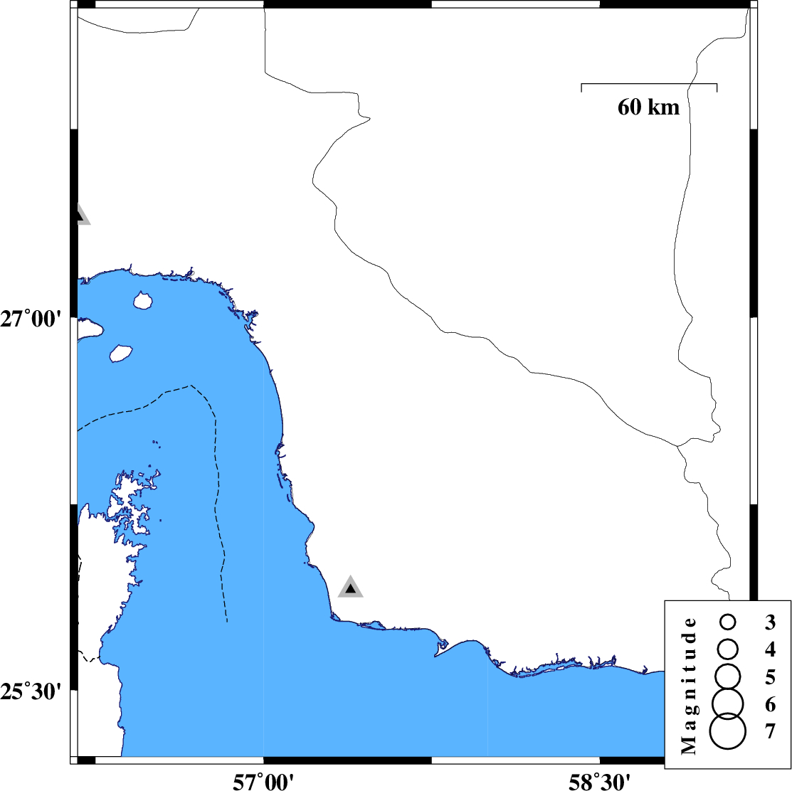 2013/05/11 03:09:48.1 07:39:48.1 26.5257.8715 Ms:5.7 Hormozgan Province, 99 km North-East of Jask