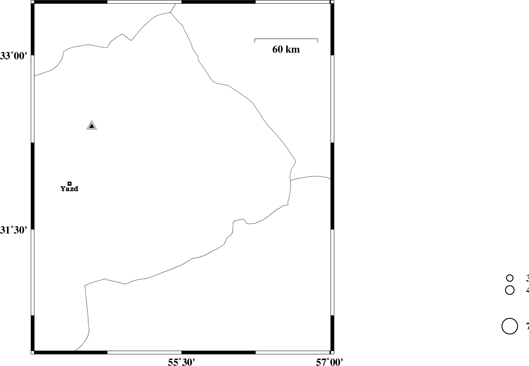 | 2013/05/14 | 14:42:02.6 | 19:12:02.6 | 31.94 | 55.51 | 15 | ML:2.2 | Yazd Province, 38 km North-East of Bafq |