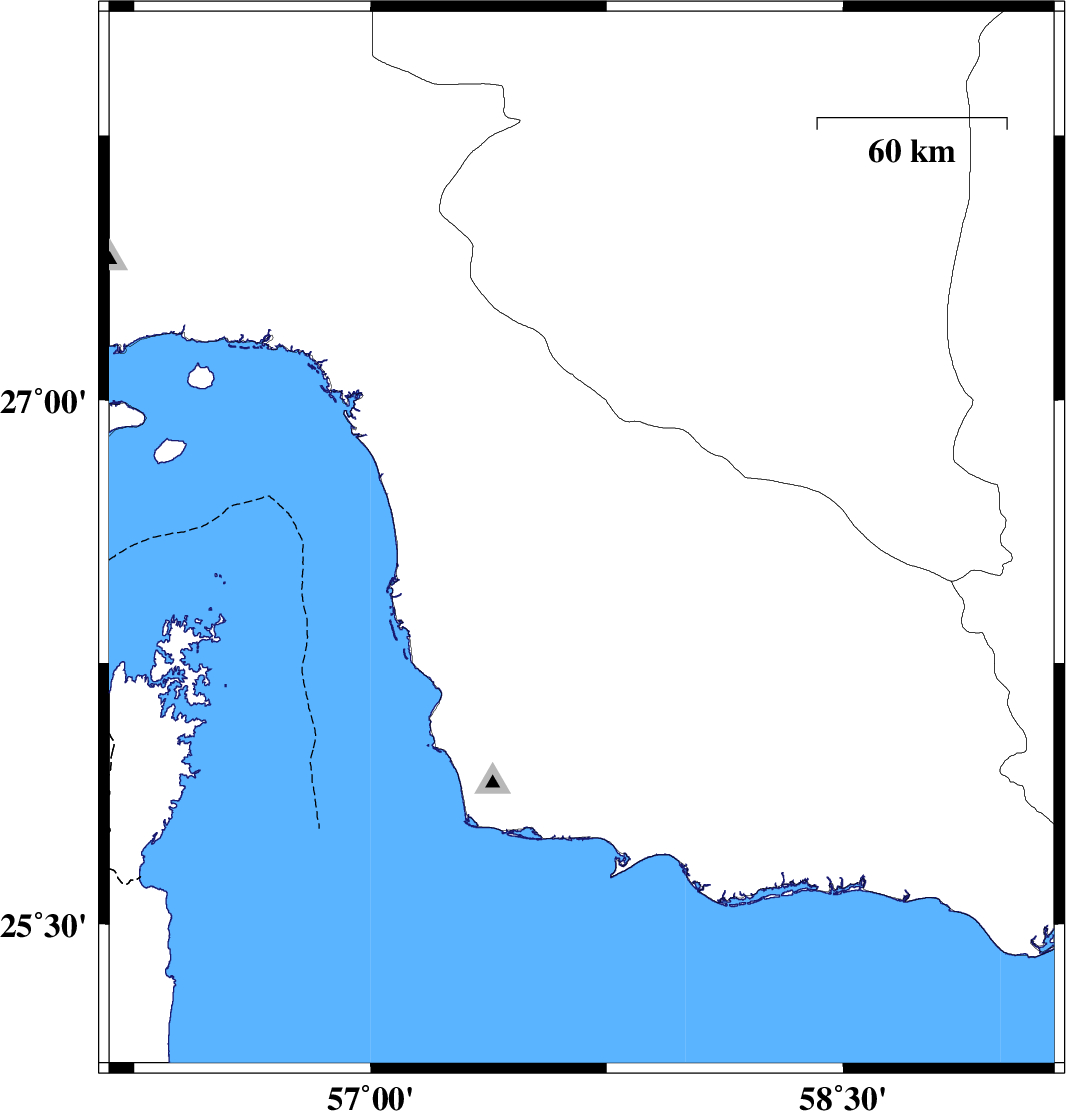 Map Region : lat:25.1-28.1  lon:56.17-59.17