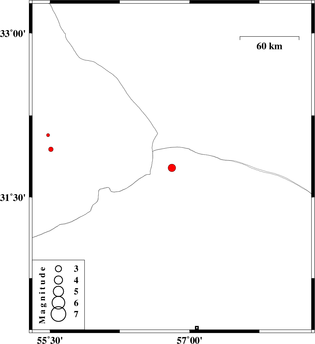 | 2013/05/20 | 10:04:12.9 | 14:34:12.9 | 32.07 | 55.48 | 18 | ML:1.5 | Yazd Province, 53 km North of Bafq | ||