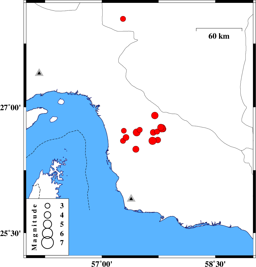 2013/05/26 20:05:23.7 00:35:23.7 26.7157.7318 ML:3.3 Hormozgan Province, 81 km South-East of Manujan