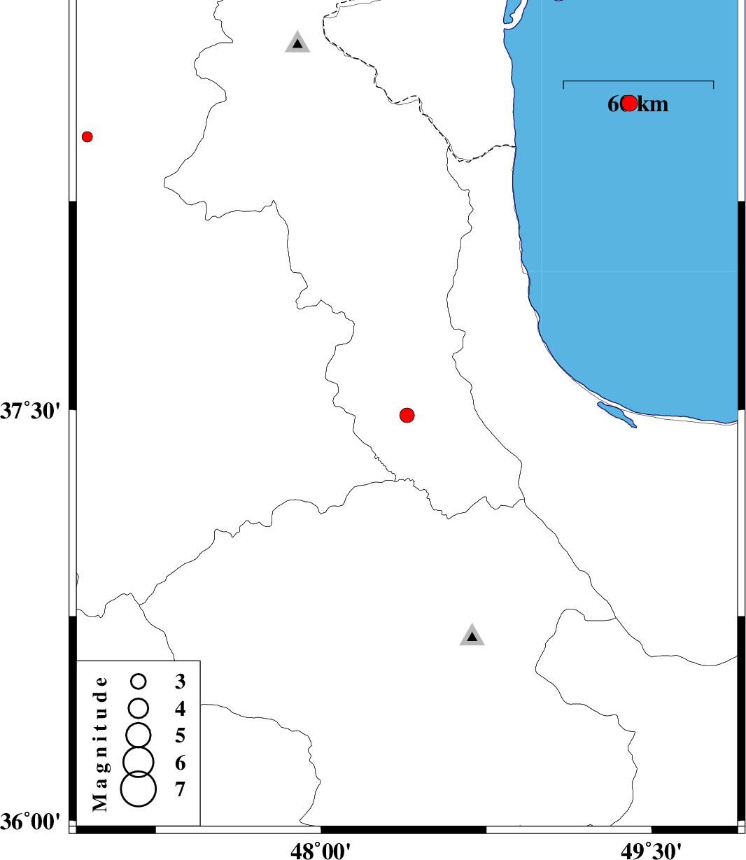 | 2013/05/25 | 02:07:47.9 | 06:37:47.9 | 38.48 | 46.94 | 6 | ML:2.1 | Azarbaijan Sharghi Province, 12 km West of Ahar |