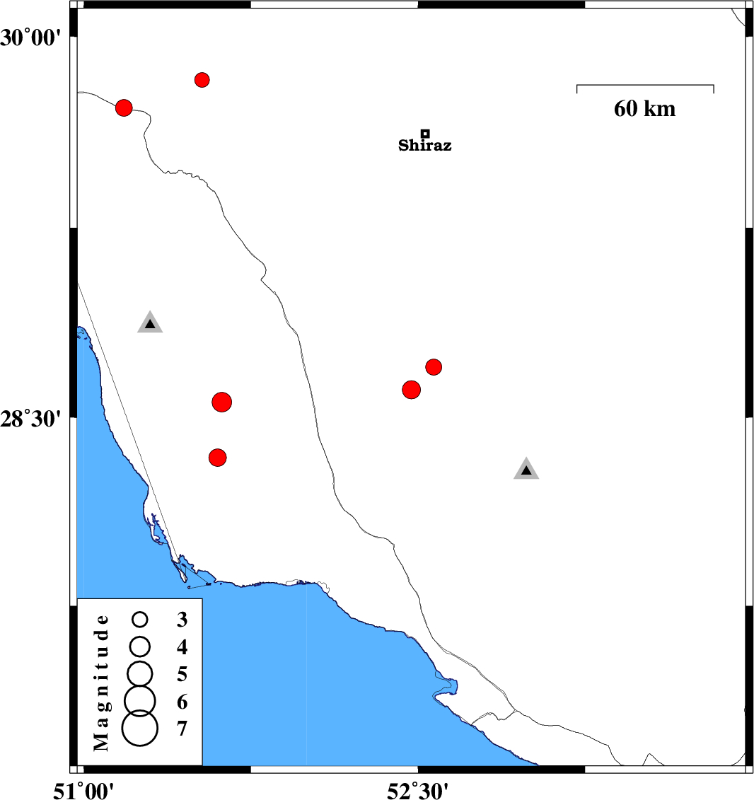 | 2013/06/07 | 10:48:30.0 | 15:18:30.0 | 29.72 | 51.18 | 43 | ML:3.4 | Fars Province, 51 km North of Borazjan | ||