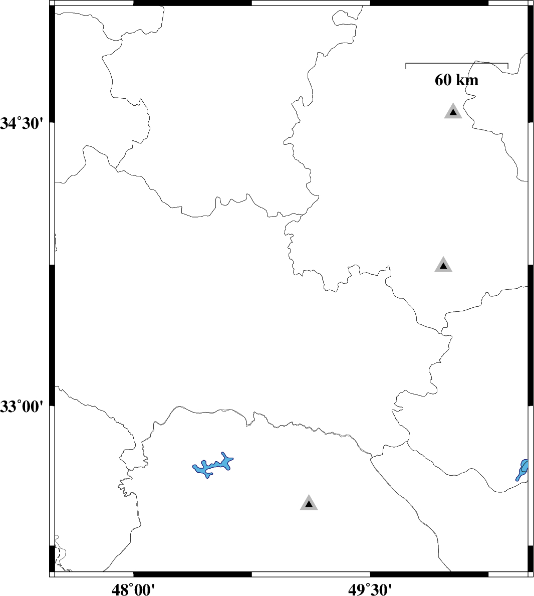 | 2013/06/14 | 17:59:58.1 | 22:29:58.1 | 33.61 | 49 | 22 | ML:3.1 | Lorestan Province, 16 km North of Dorud | ||