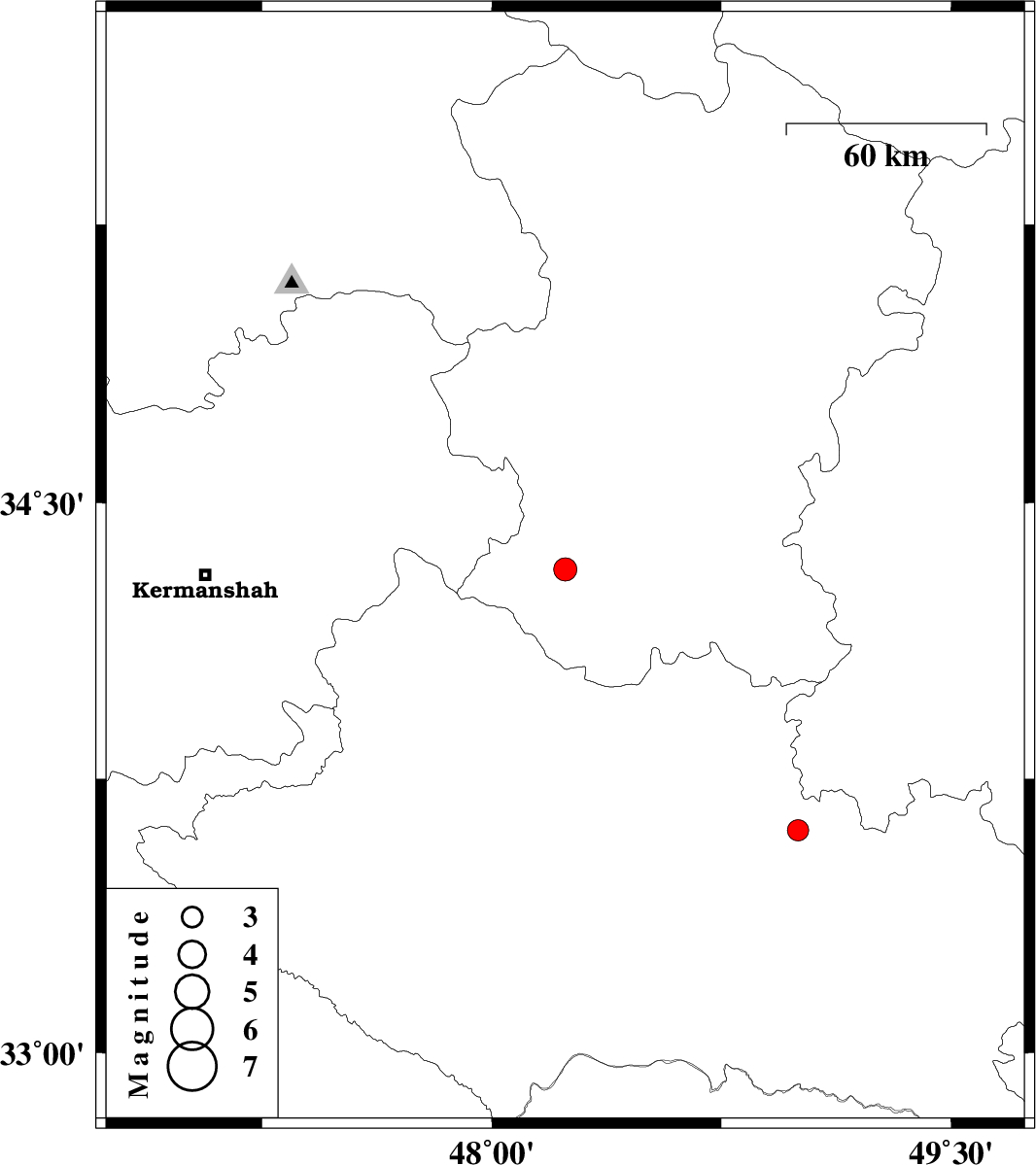 | 2013/06/14 | 17:59:58.1 | 22:29:58.1 | 33.61 | 49 | 22 | ML:3.1 | Lorestan Province, 16 km North of Dorud |