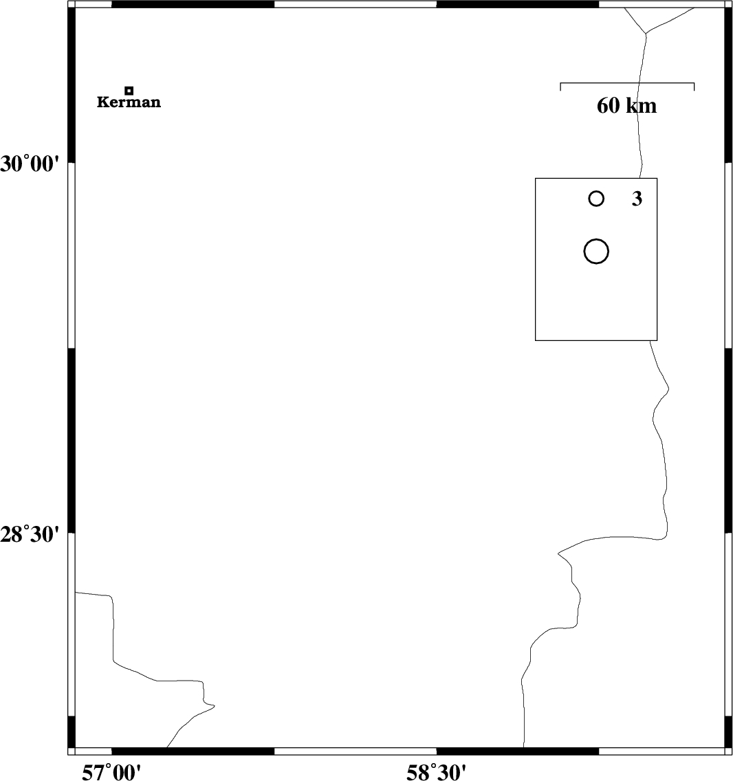 | 2013/06/17 | 03:57:00.3 | 08:27:00.3 | 29.12 | 58.33 | 15 | ML:3.7 | Kerman Province, 3 km Bam |