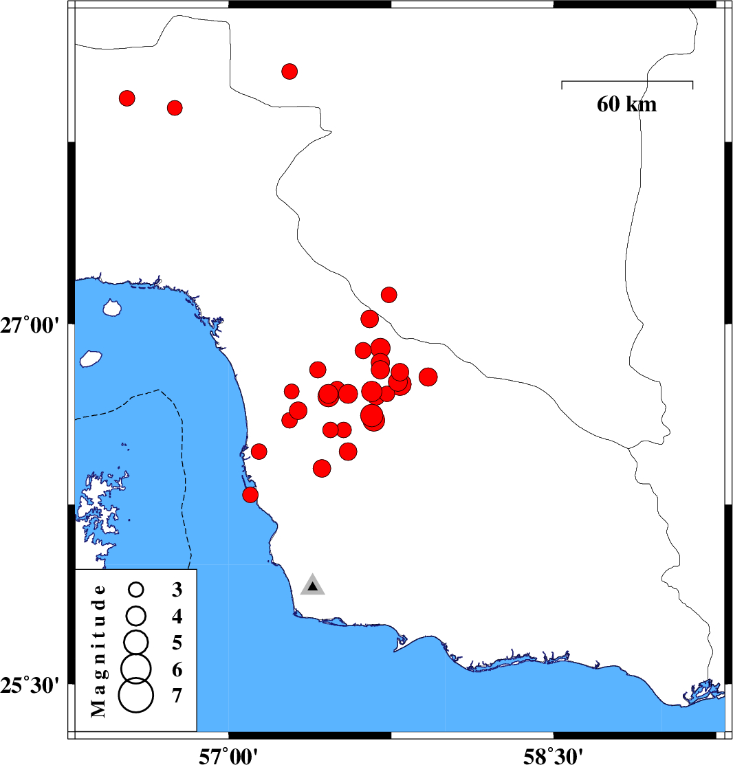 2013/06/05 09:33:49.9 14:03:49.9 26.8457.714 ML:3.8 Hormozgan Province, 66 km South-East of Manujan