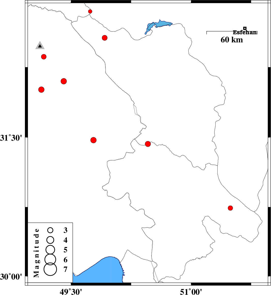 | 2013/06/23 | 06:37:29.5 | 11:07:29.5 | 31.43 | 50.46 | 16 | ML:3.1 | Chaharmahal Bakhtiari Province, 34 km West of Lordegan | ||