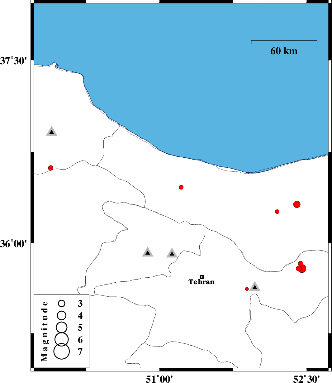 | 2013/06/16 | 06:10:27.4 | 10:40:27.4 | 36.26 | 52.2 | 7 | ML:1.9 | Mazandaran Province, 27 km South-West of Amol |