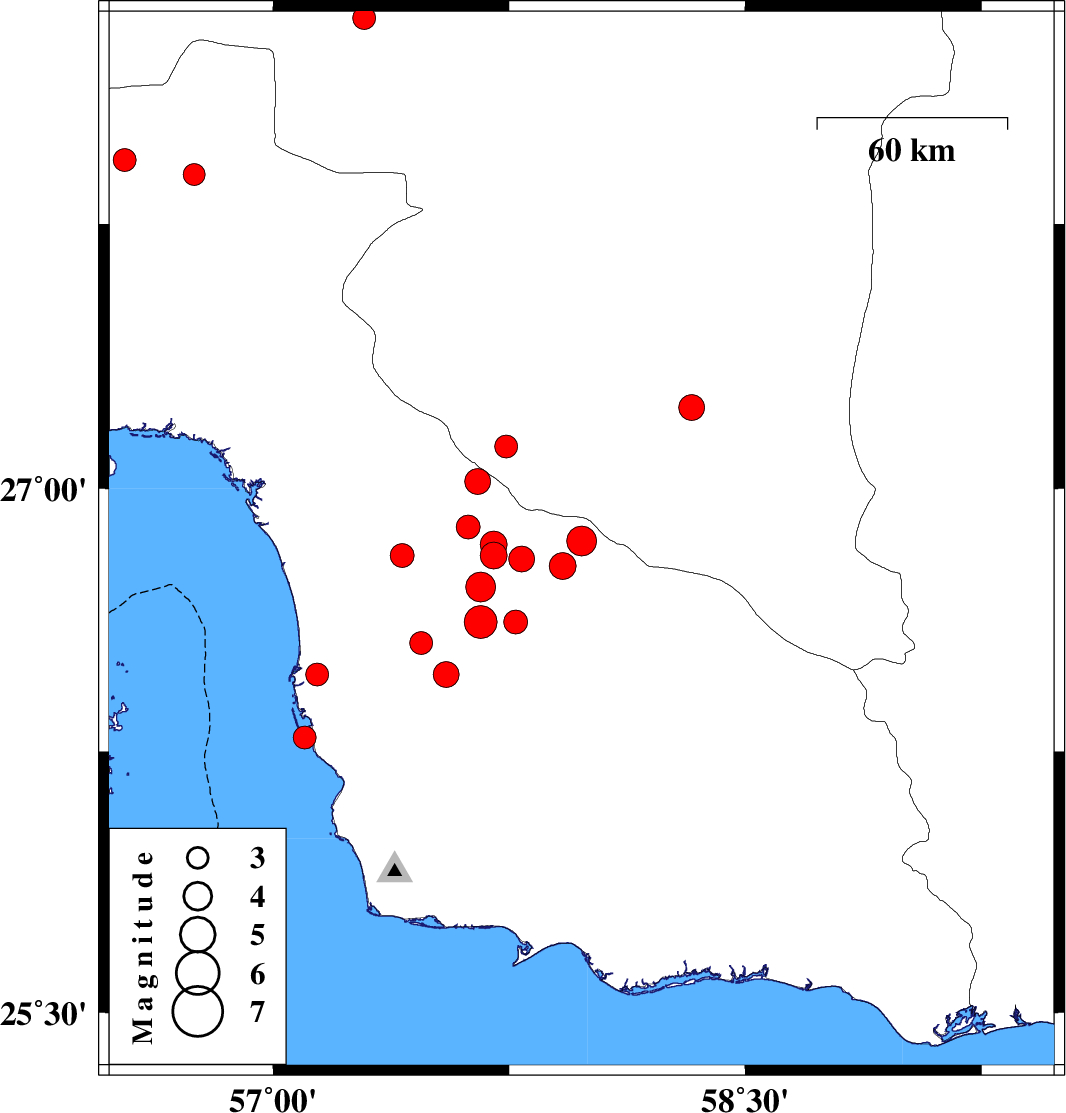 Oman Sea, 96 km South of Minab | |