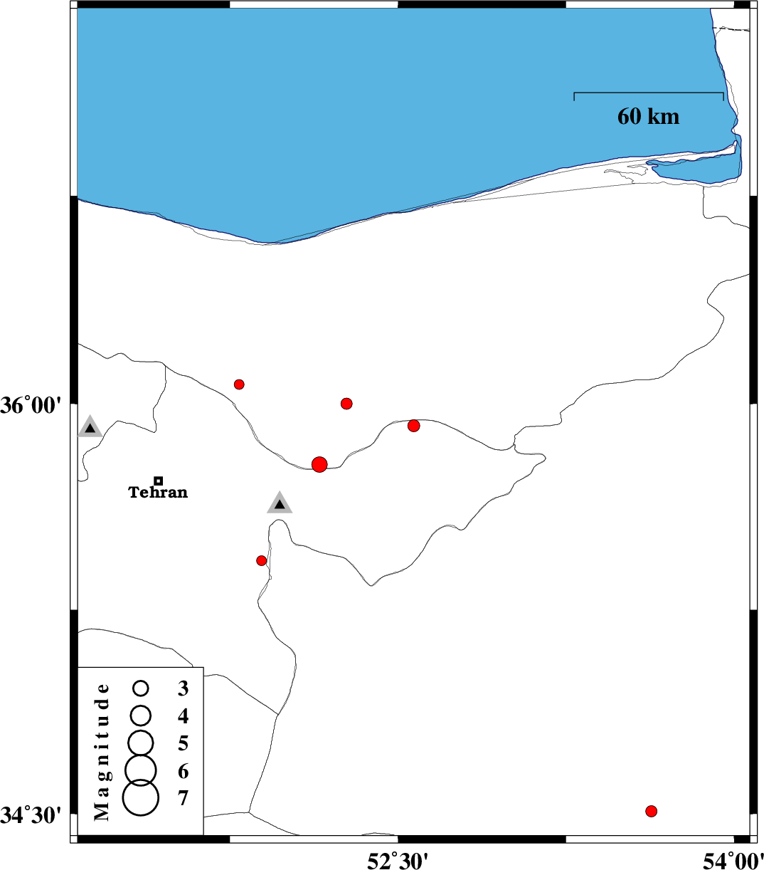 | 2013/06/30 | 08:08:36.9 | 12:38:36.9 | 34.51 | 53.63 | 14 | ML:2.3 | Semnan Province, 119 km South-East of Semnan | ||