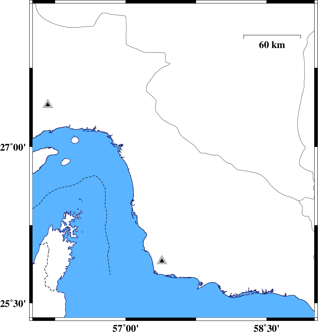 Oman Sea, 96 km South of Minab | |