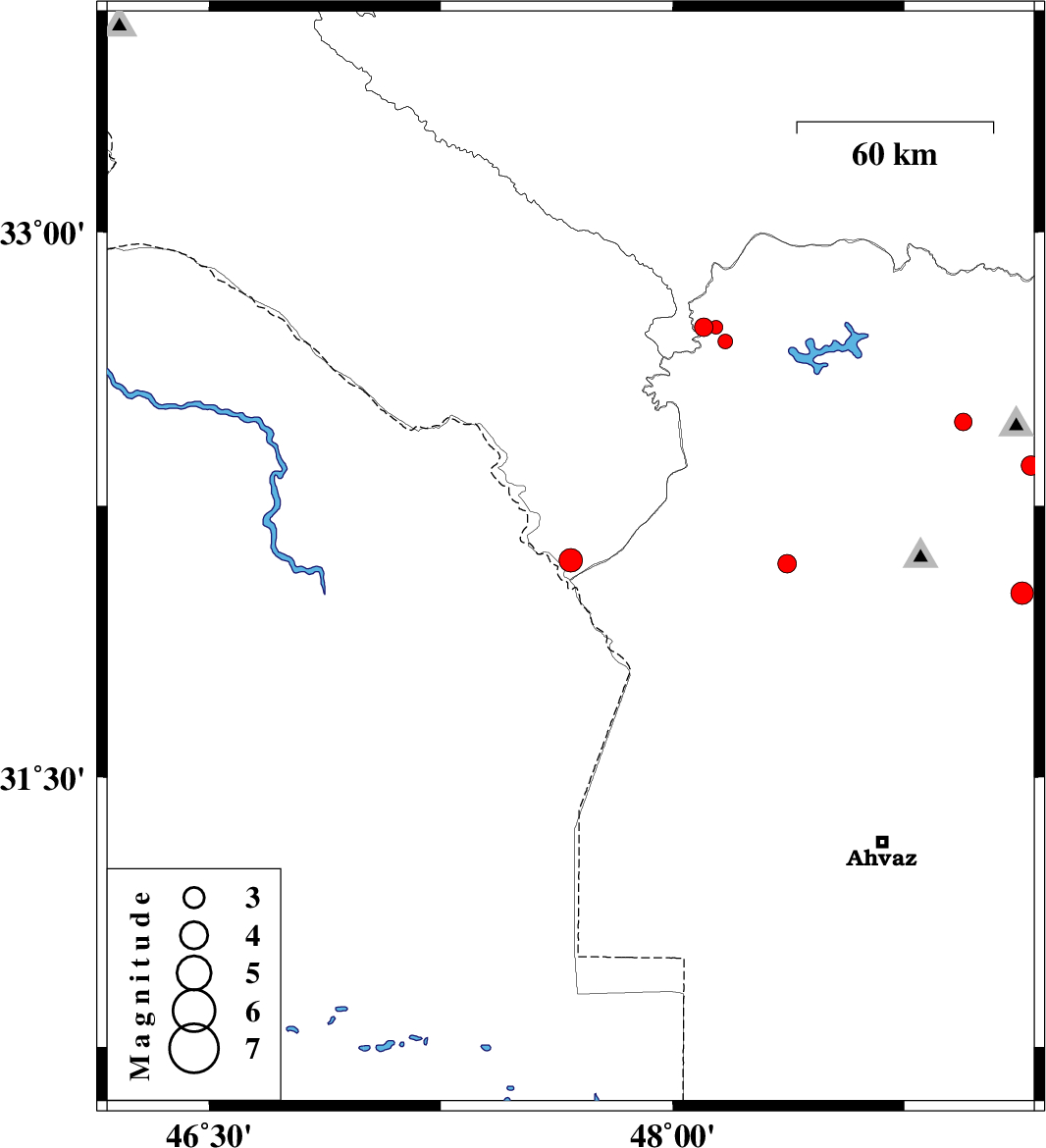 | 2013/07/04 | 18:51:33.2 | 23:21:33.2 | 32.09 | 48.37 | 14 | ML:2.7 | Khoozestan Province, 17 km South-East of Shush | ||