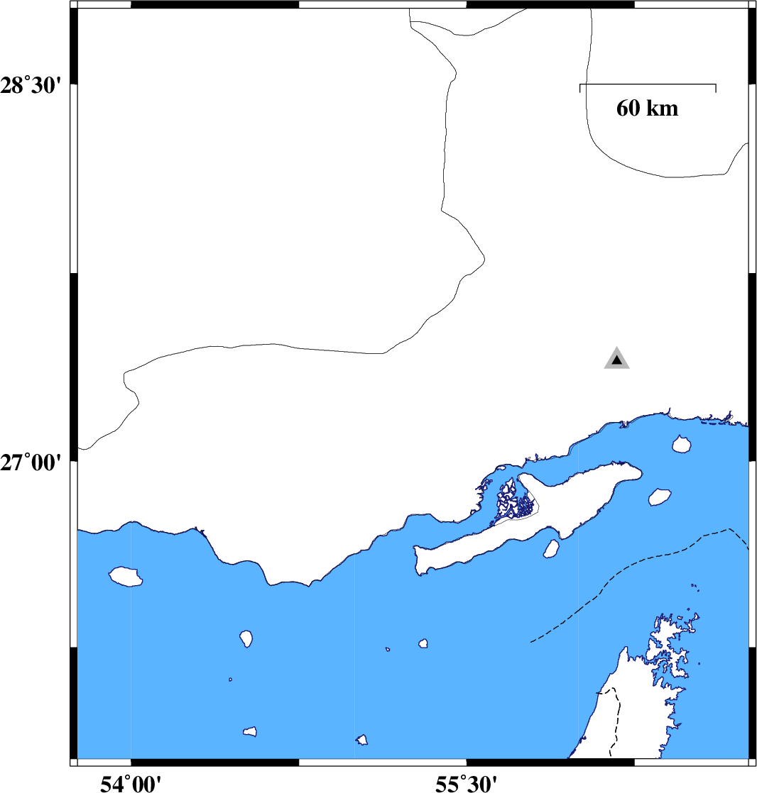 | 2013/07/27 | 12:29:47.1 | 16:59:47.1 | 27.3 | 55.26 | 18 | ML:3.4 | Hormozgan Province, 89 km North-East of Bastak | ||