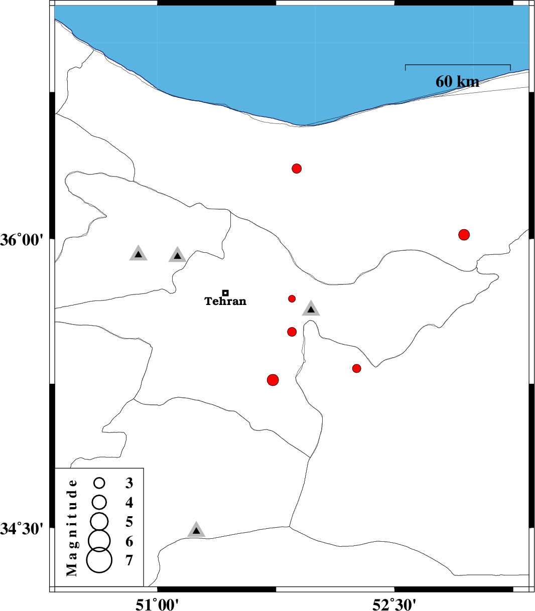 | 2013/07/30 | 10:19:38.2 | 14:49:38.2 | 35.69 | 51.85 | 18 | ML:2 | Tehran Province, 20 km West of Damavand | ||